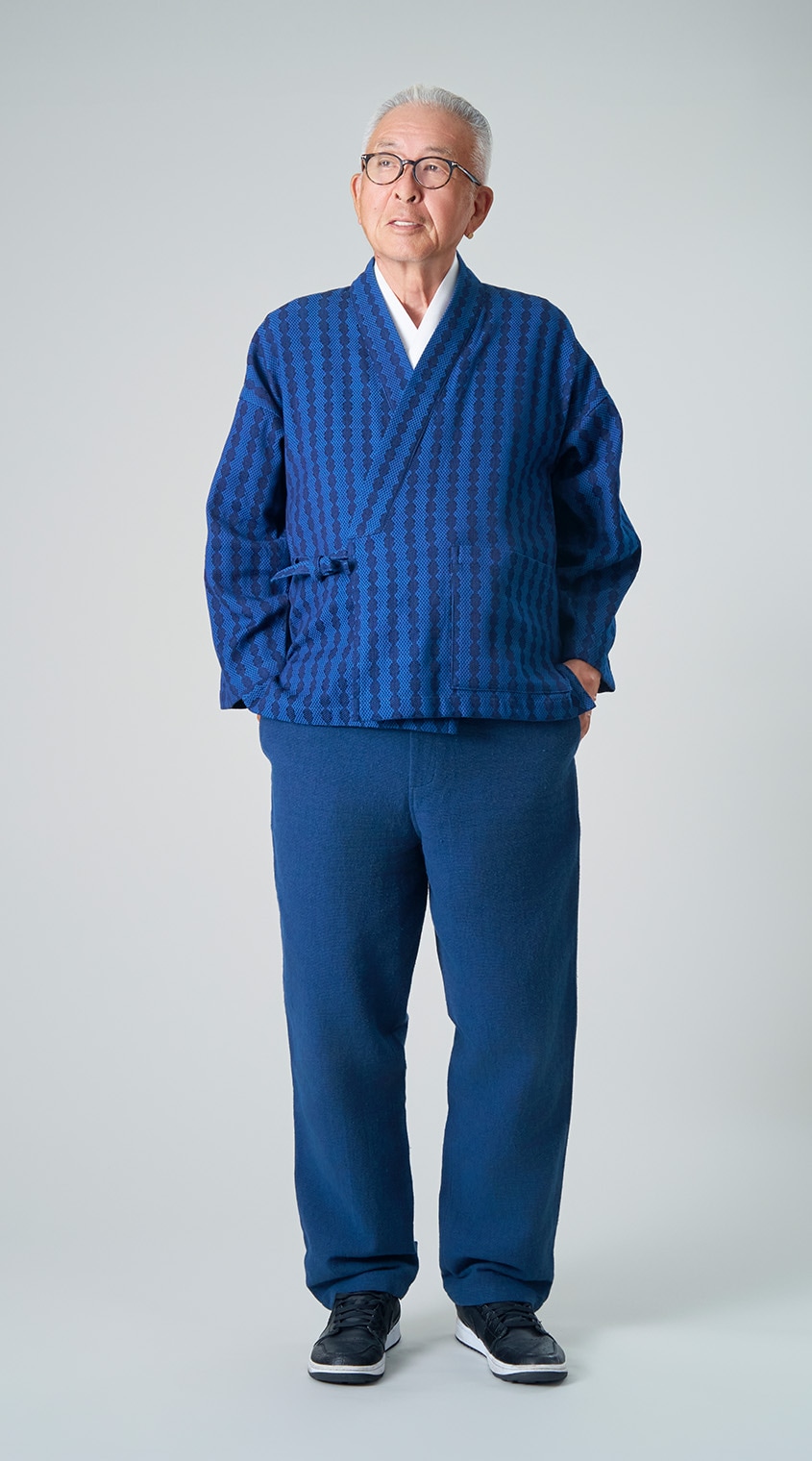 刺し子作務衣 / 七宝つなぎ柄