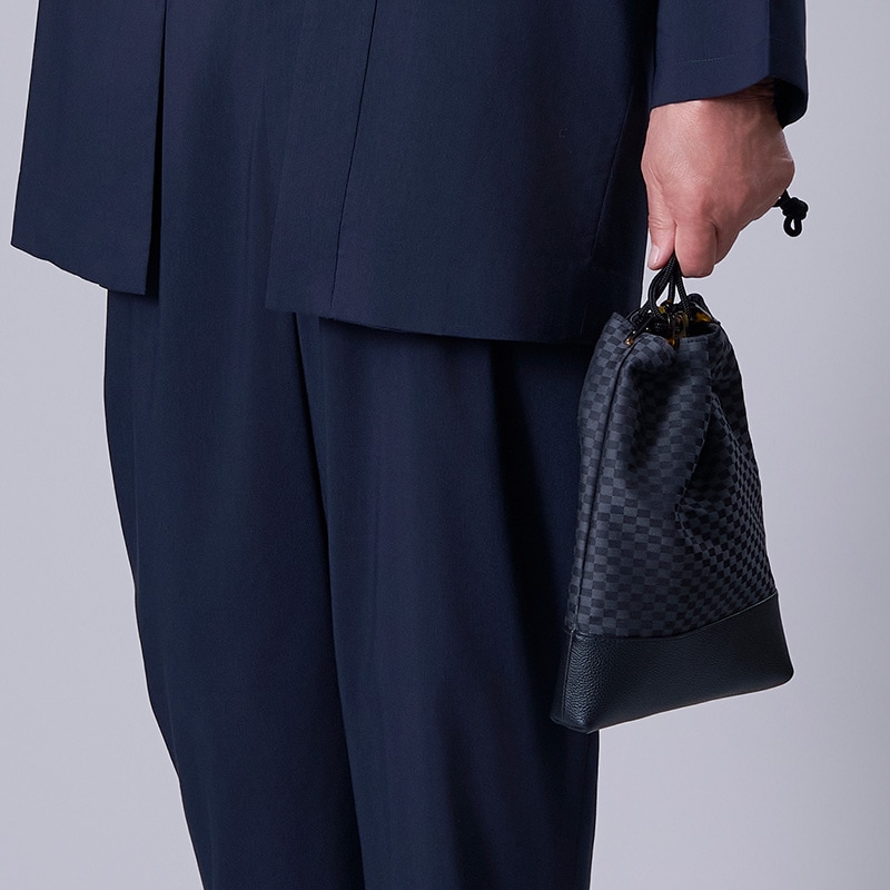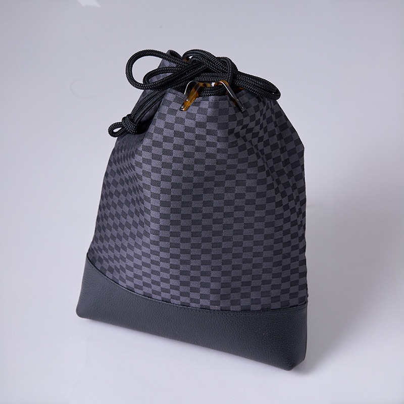 【バッグ】牛皮信玄袋 市松柄